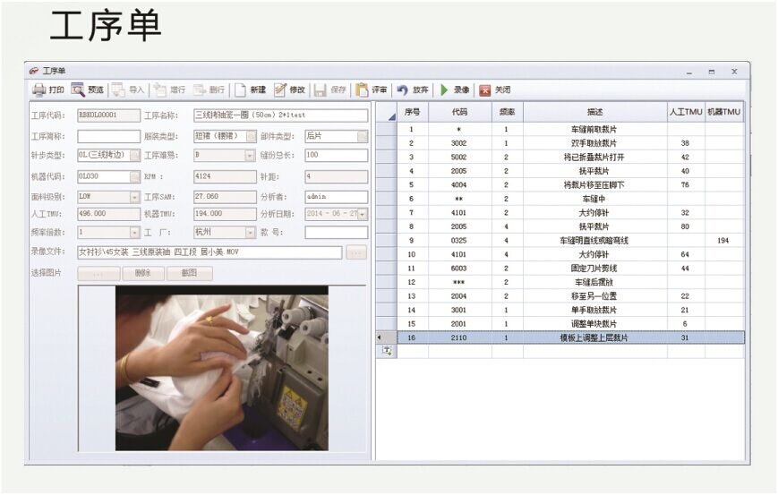 2、標準工時系統(tǒng)分析服裝生產(chǎn)每個動作,得到精準的工序數(shù)據(jù);