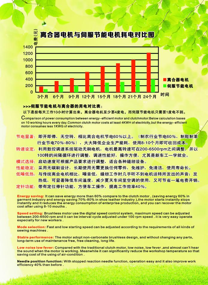 近日,紡織工業生產中“節能”一詞被熱傳,隨著國家倡導資源合理化利用,節能自然成為生產企業關注的焦點。據不完全統計,年利潤超過10億的生產企業,所節約下來的能源能夠維持1萬人三年的優質生活,而被節省下來的能源不僅降低了企業的生產成本,同時也可以增加企業生產的技術和設備引進,提高生產效率。普遍的“節能”產品,市場上重此皆彼,而在紡織工業用縫紉機生產中,以高速生產為主,擴大產品的數量為焦點,在設備的節能方面往往被忽視,而縫紉機節能電機、直驅電機以、縫紉機自動化改造以及機械自動化改造目前也開始得到生產企業快速應用。