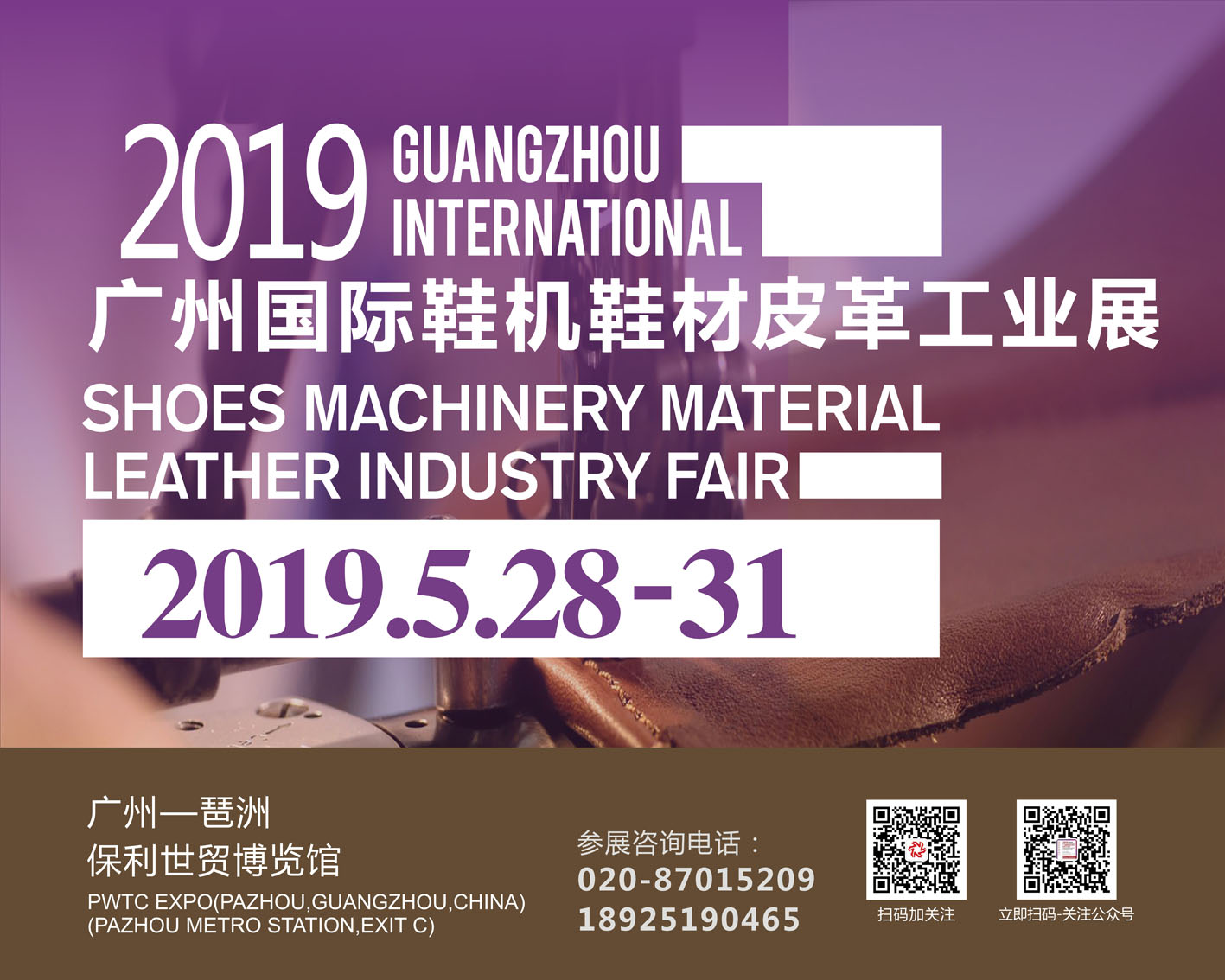 題記:由廣東鞋機協(xié)會與廣州廣旅展覽策劃有限公司主辦、東莞鞋機商會大力支持的“2019廣州國際鞋機鞋材皮革工業(yè)展覽會”將于2019年5月28-31日在廣州-琶洲-保利世貿(mào)博覽館再度舉行,展會繼續(xù)以企業(yè)展商效果為中心,現(xiàn)已成為行業(yè)不容錯過的年度展會!