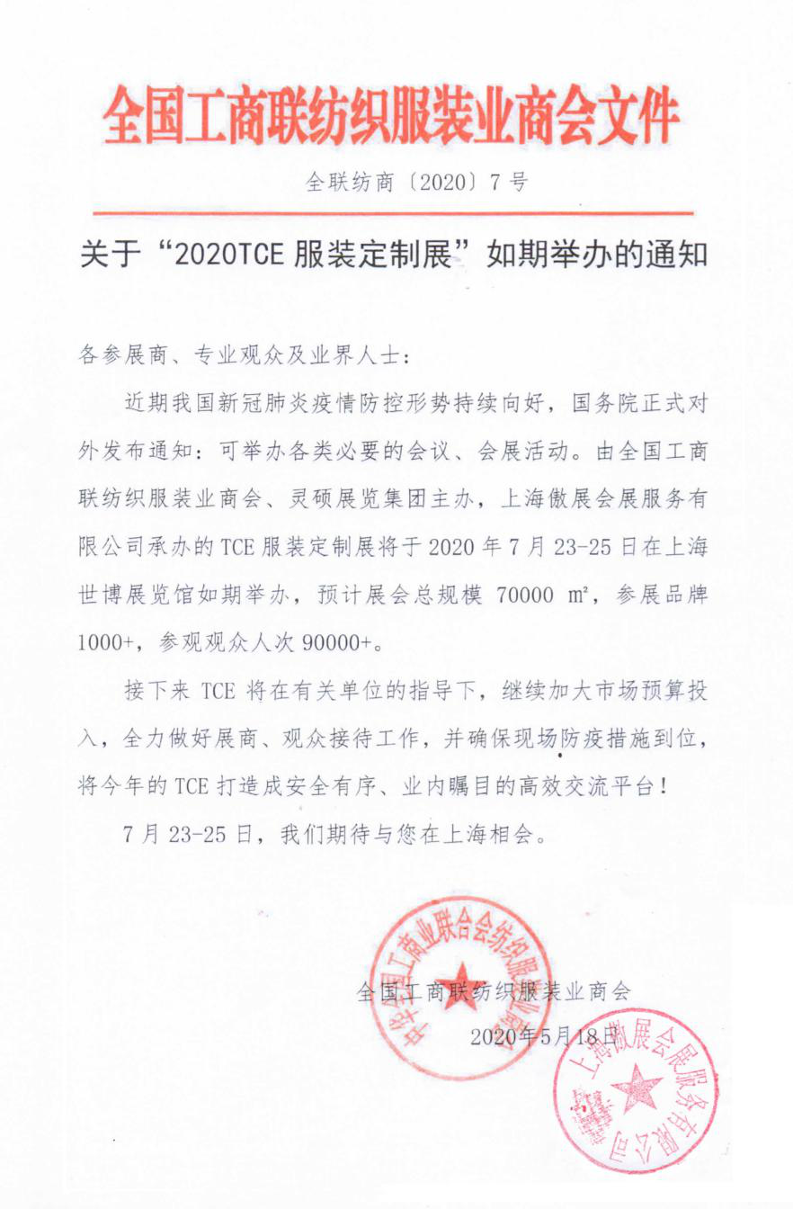 2020TCE服裝定制展將于7月23-25日如期舉辦!