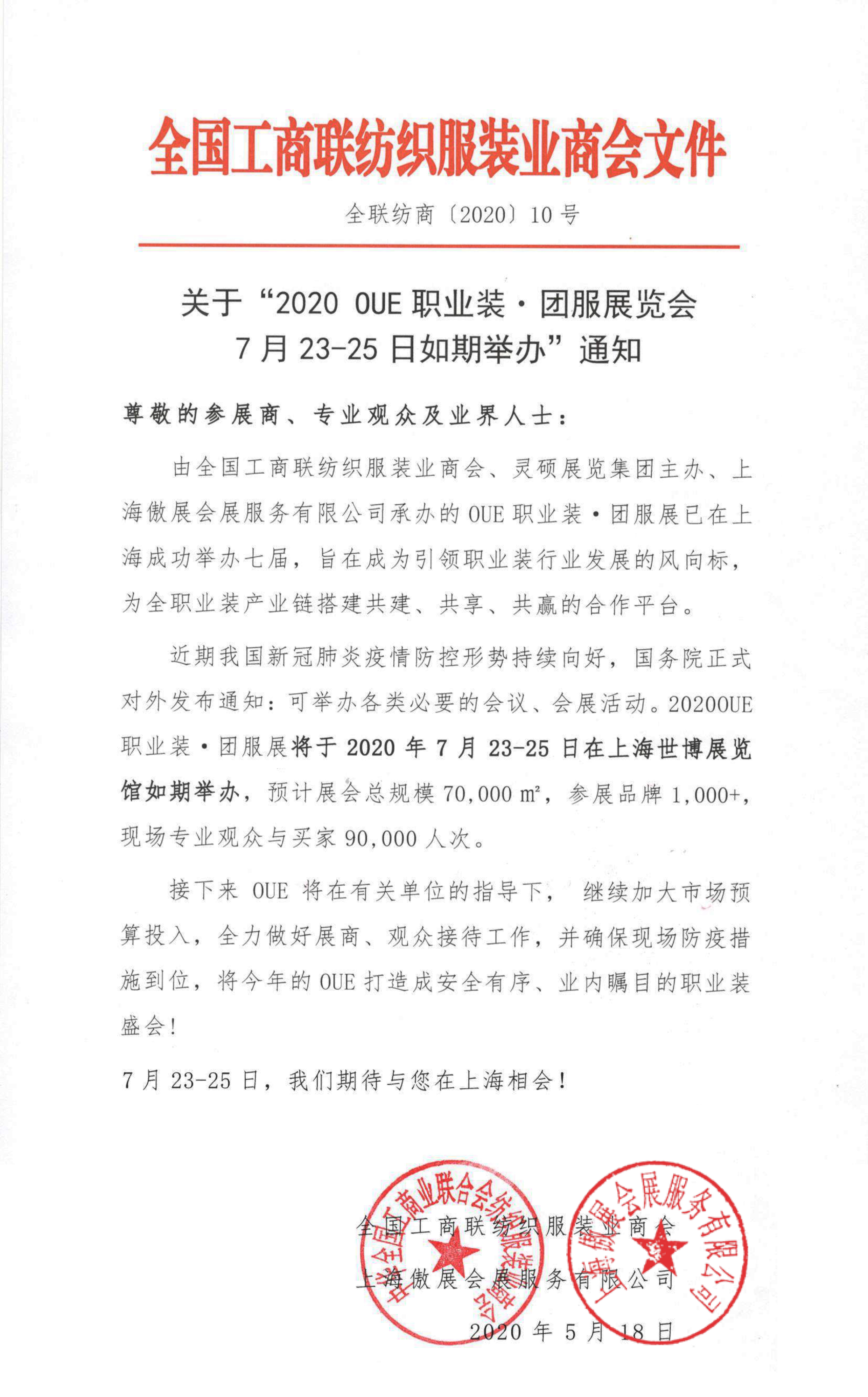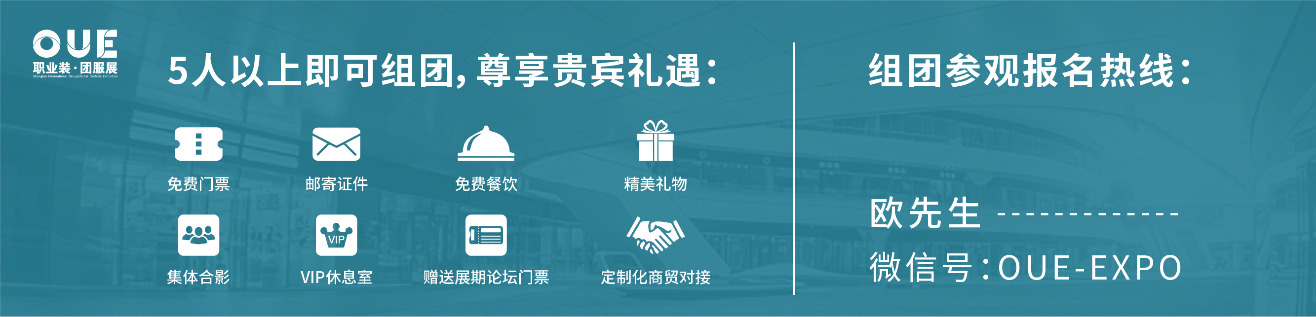 或搜索微信公眾號:OUE職業裝團服展7月23-25日