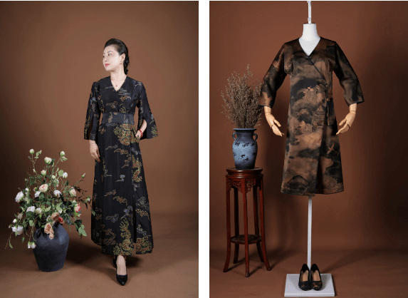“我們產品最初的定位是45歲+的客戶群體,最近幾年因為工藝的提升,年輕版型也慢慢得到了釋放,30歲+的女性也能穿到適合自己的香云紗產品。另外面料花色的選擇也越來越豐富,衍生出來的產品系列就會越多,所以國色匠品的產品適用年齡段也是在一直在突破的。”張總自信地回答。
