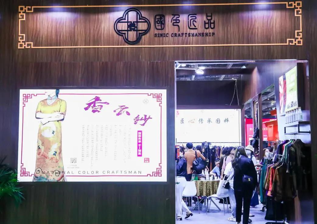 2017年,偶遇同是初創期間的TCE服裝定制展,交談甚歡之間達成合作,將國色匠品香云紗帶到展會現場來,讓更多人看到香云紗。
