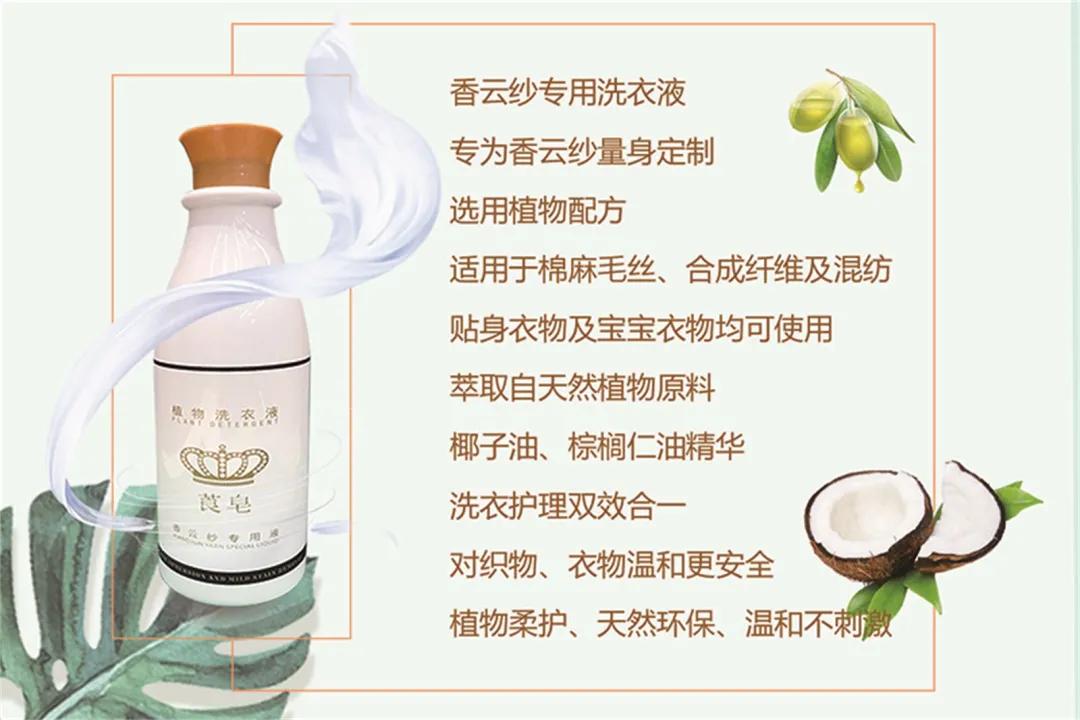 長久以來,國色匠品一直立足于客戶角度,不論選材、制作、都堅守初心,為客戶提供性價比更高的香云紗服飾產品。特別是從事香云紗經營這么久,國色匠品發現很多消費者被香云紗清洗地問題所困擾。于是在2000年組建團隊,精心研發了香云紗專用洗衣液——莨皂。純植物溫和配方在清洗香云紗的同時起到柔順、固色的作用,一經問世就的到業界和廣大消費者的認可。